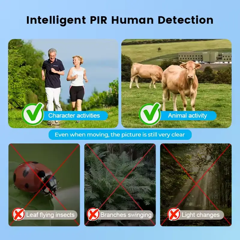 Smart PIR Motion Sensor: Motion detection & human detection alarm,Solar Charging 24/7 Online,Built by low power consumption technology,360 Degree Panoramic Remote View,355° Pan ,90°Tilt